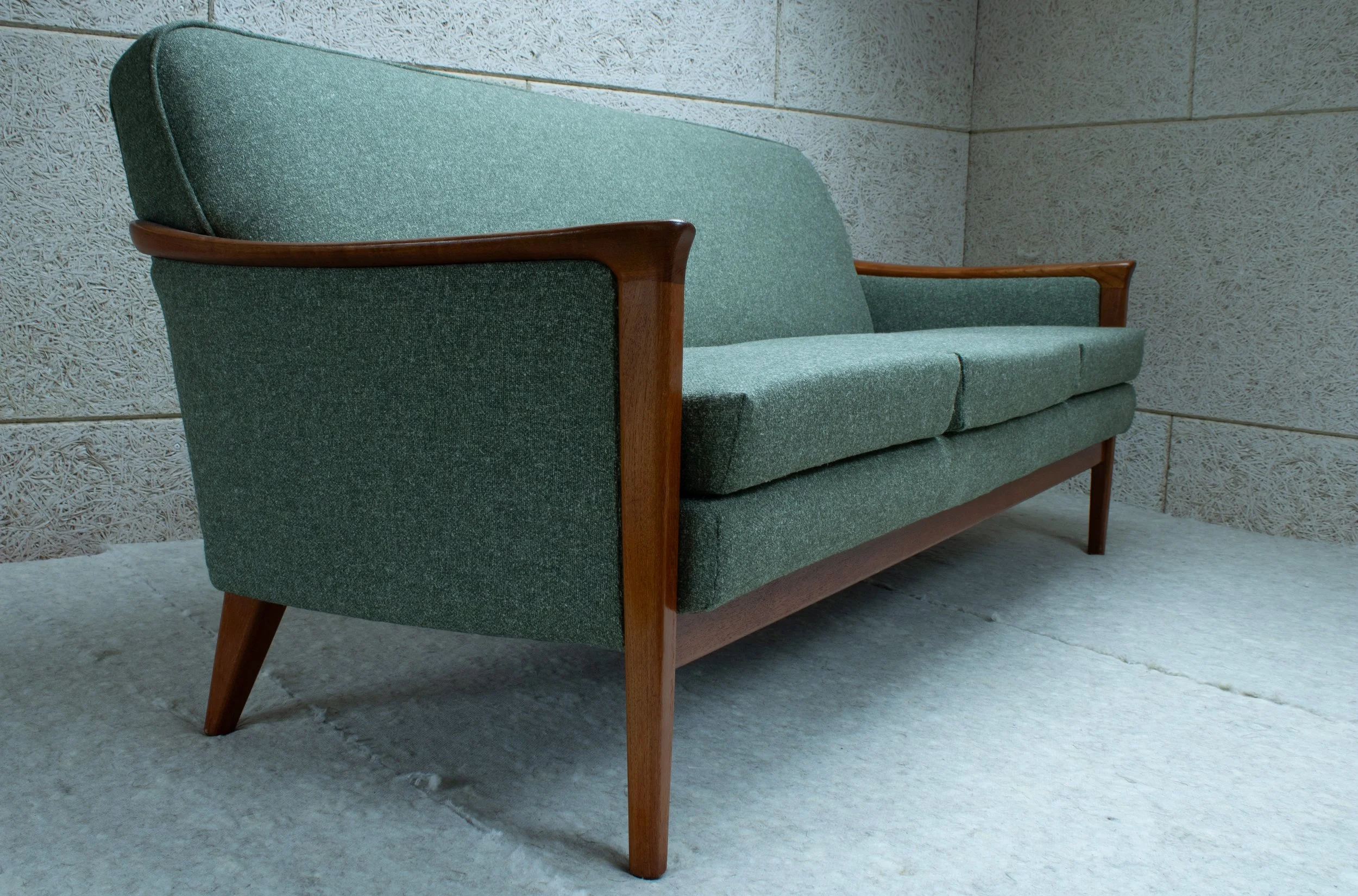 This sofa has been fully restored and reupholstered using natural latex foam, coir and wool.